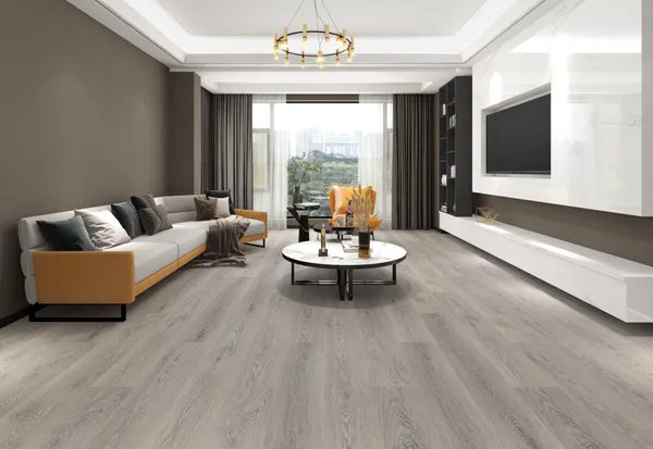 Luxury vinyl planks (LVP) are made of compressed layers of vinyl, with a high resolution image overlaid onto them, to mimic the look of another material. Stone polymer composite (SPC) flooring is similar, in that it includes a high resolution image, overlaid onto vinyl and coated with a transparent wear layer to protect the floor from scratches, stains, fading, etc. However, the core material in SPC is a hybrid of plastic and compressed limestone powder. This makes the planks hard and rigid, rather than soft and flexible.