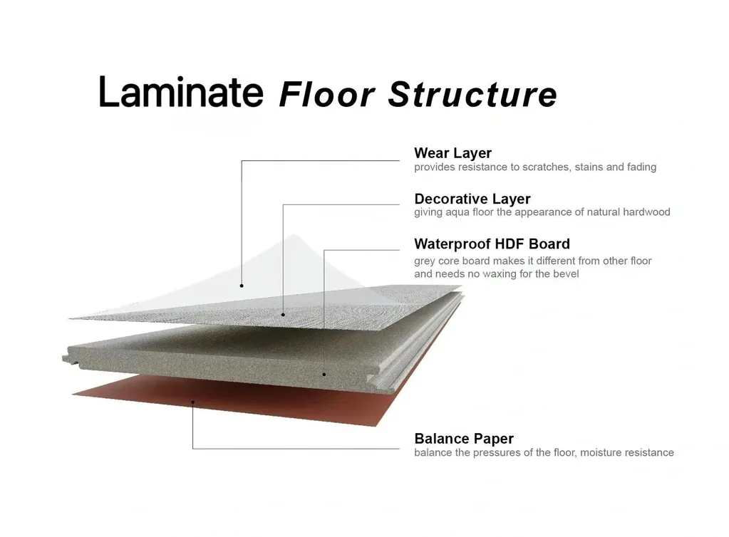 The Laminate Floor offers realistic wood looks with a multi-layer design, IXPE padding, and moisture-resistant construction for long performance